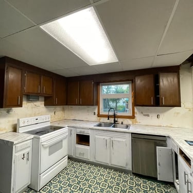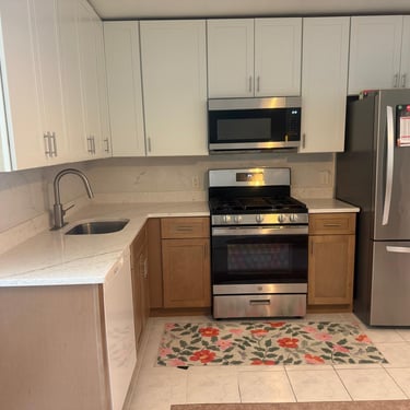 We transformed this outdated kitchen by removing old cabinets, flooring, and appliances, then rebuilding the space with a modern layout and high-quality finishes. The new design features sleek cabinetry, quartz-style countertops, updated lighting, and a bright, open feel that completely elevates the home.
