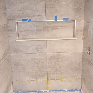 This intimate gallery showcases fine tiling works expertly crafted by our company, highlighting precision, texture, and attention to detail. The space invites visitors to experience firsthand how our workmanship transforms quality materials into functional art.